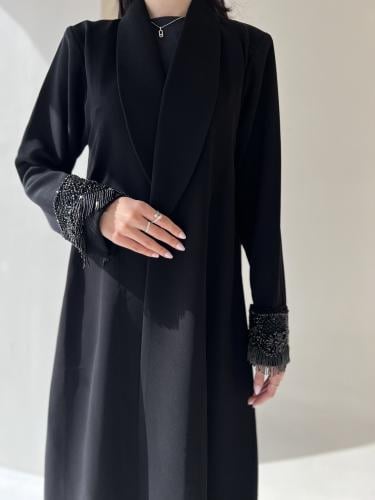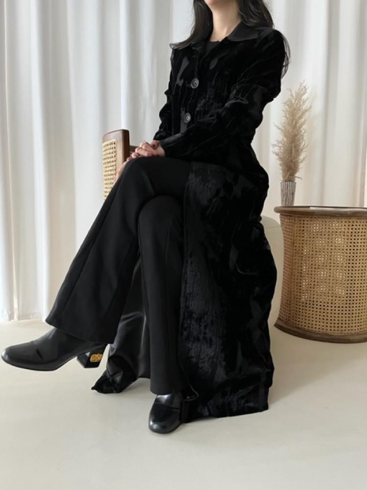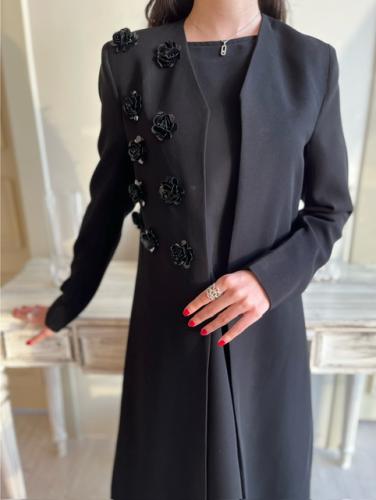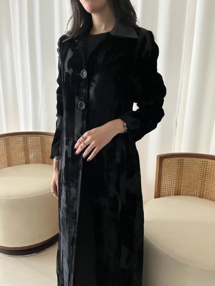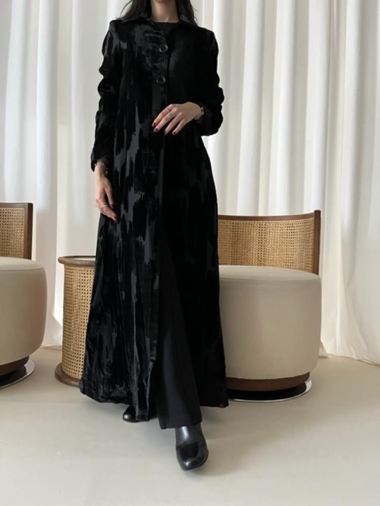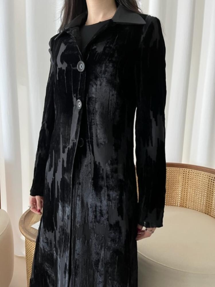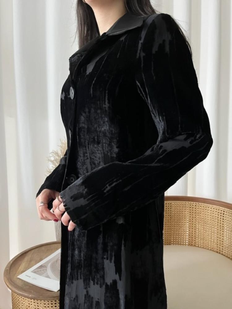 بليزر بقماش شيفون مخمل مبطن باللون الاسود الياقا بقماش التفته